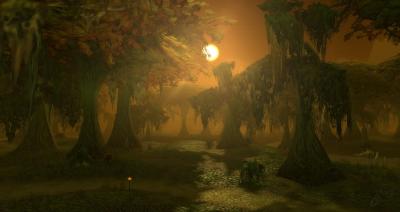 Una palude tetra e marcescente, dove grossi alberi a pelo d'acqua si alternano a enormi zolle di terra e pietra che si innalzano dal terreno, dentro molte delle quali vi sono grotte, piu o meno profonde.